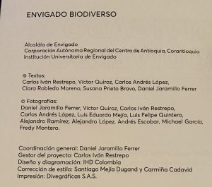 «Biodiverse Envigado is a gift to the city in the commemoration of 250 years of greatness, tradition and innovation; testimony of the life that inhabits our territory and shows the world of the extraordinary richness that the thousands of species that coexist with us offer us. I invite you to open these pages with the same curiosity with which you walk a path in the forest, with the task of protecting it with responsibility, pride and love for Envigado.»