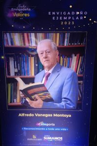 Reconocimiento a toda una vida. Premia el trabajo de líderes y personas que, a lo largo de su vida y su carrera en diversos campos, propiciaron bienestar para la comunidad. Alfredo Vanegas Montoya, Abogado, periodista, profesor, escritor e investigador. Presidente del Centro de Historia de Envigado. Fue Presidente del Concejo de Envigado, Presidente de la Cámara de Comercio de Medellín para Antioquia, Secretario de Educación y Cultura del Departamento de Antioquia, Miembro del Congreso de la República de Colombia como Representante a la Cámara, entre otras posiciones. Es autor de varios libros.